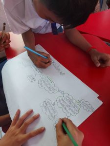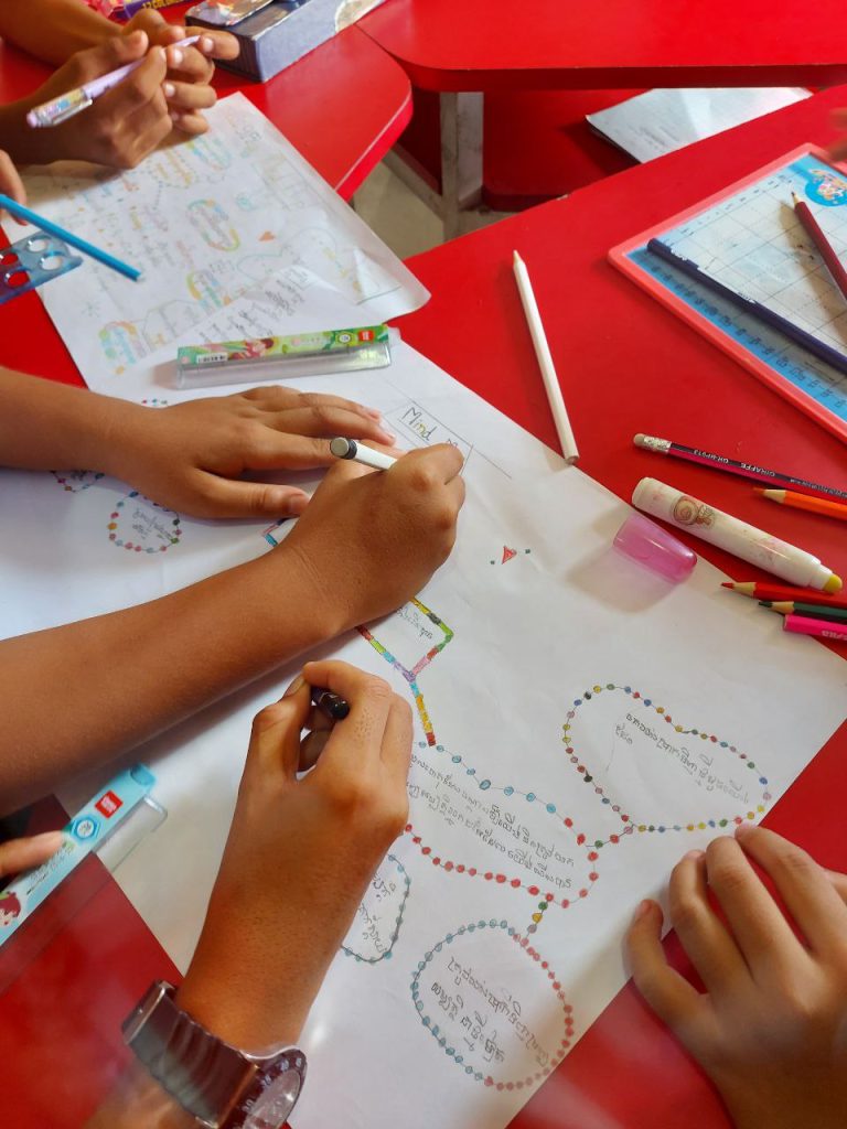 On the morning of June 15, 2023, the 3rd-grade students of Preah Reach Akkea Mohesey Primary School, taught by Ms. Sophany, organized the students into groups to create a concept map project. This is just the beginning of the students to find out what As a result, each group of students drew a sketch of a mind map, which they discussed on the purpose of the creation, although not yet fully achieved. They are very happy to create this project because it is the first activity they have experienced and one that they will continue to do in the future.